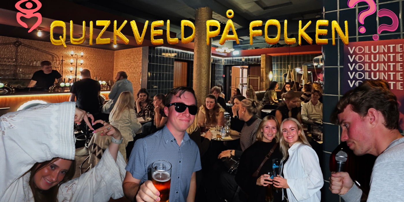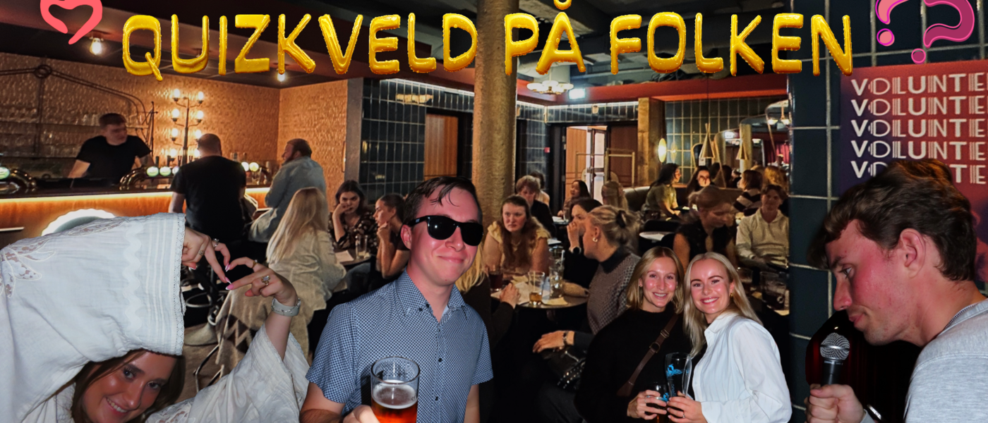 Lagene settes opp tilfeldig ved ankomst, så her har du en perfekt mulighet til å bli kjent med nye folk. Det blir studentpriser i baren og premie til vinnerlaget 🏆 Etter quizen er det bare å bli sittende – Folken stenger ikke før 00:00, så det er god tid til å mingle videre med nye og gamle venner. Kom alene, med en venn eller kjæresten – vi gleder oss til å møte dere!
