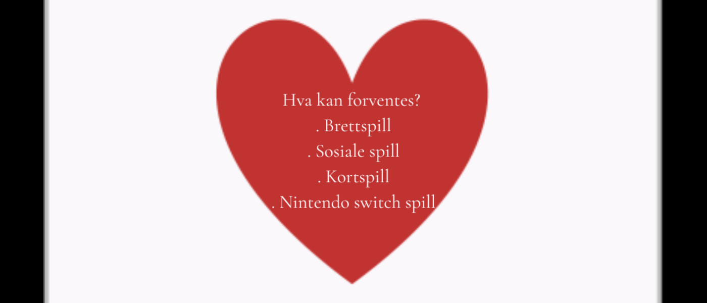Her vil det bli snacks og ulike spill. Alt fra brettspill, kortspill, utfordringer, nintendo switch, sosiale spill, strategispill, raske spill. Nesten hva en du måtte ønske :)) Gleder meg til å se deg :))